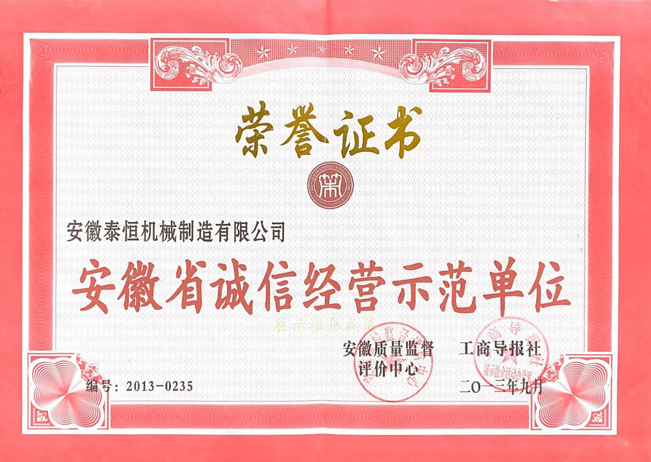 安徽省誠信經營示范單位