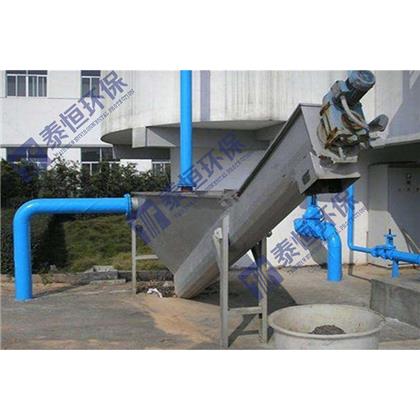 泰恒機械所研發(fā)的這款設(shè)備,其砂水混合物從頂部的法蘭接管進入儲液箱內(nèi),箱內(nèi)專門設(shè)計的散水盤使水匯集于下水槽;砂水混合液中,砂石逐漸沉淀于下部的螺旋u型槽內(nèi),空心螺旋緩慢旋轉(zhuǎn)將砂礫推向上出口,自然脫水排除。